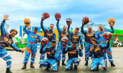 Aproveitando a festa o Parque Temático presenteia os pilotos com novos capacetes irados Apertem os cintos porque os números do espetáculo mais radical do mundo são...