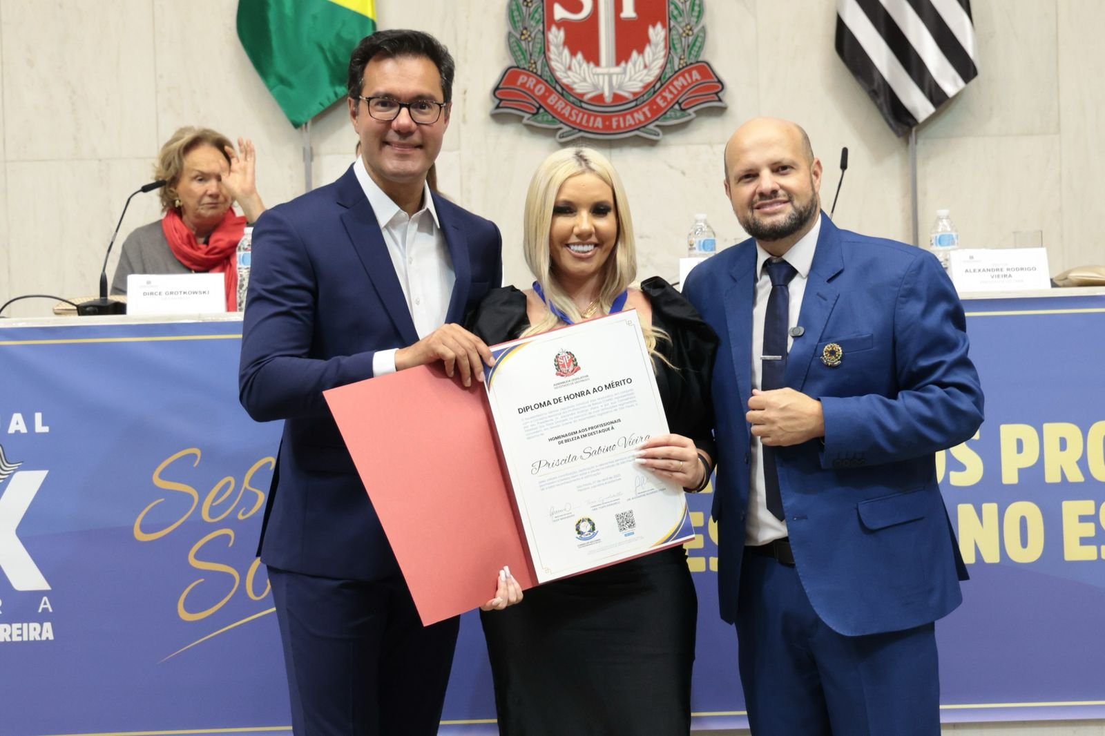 Priscila Sabino foi reconhecida como profissional destaque no ramo da área da beleza ao receber um Prêmio na Câmara Municipal de São Paulo. Tal conquista representa um marco importante em sua carreira, evidenciando sua contribuição e excelência na área da beleza.