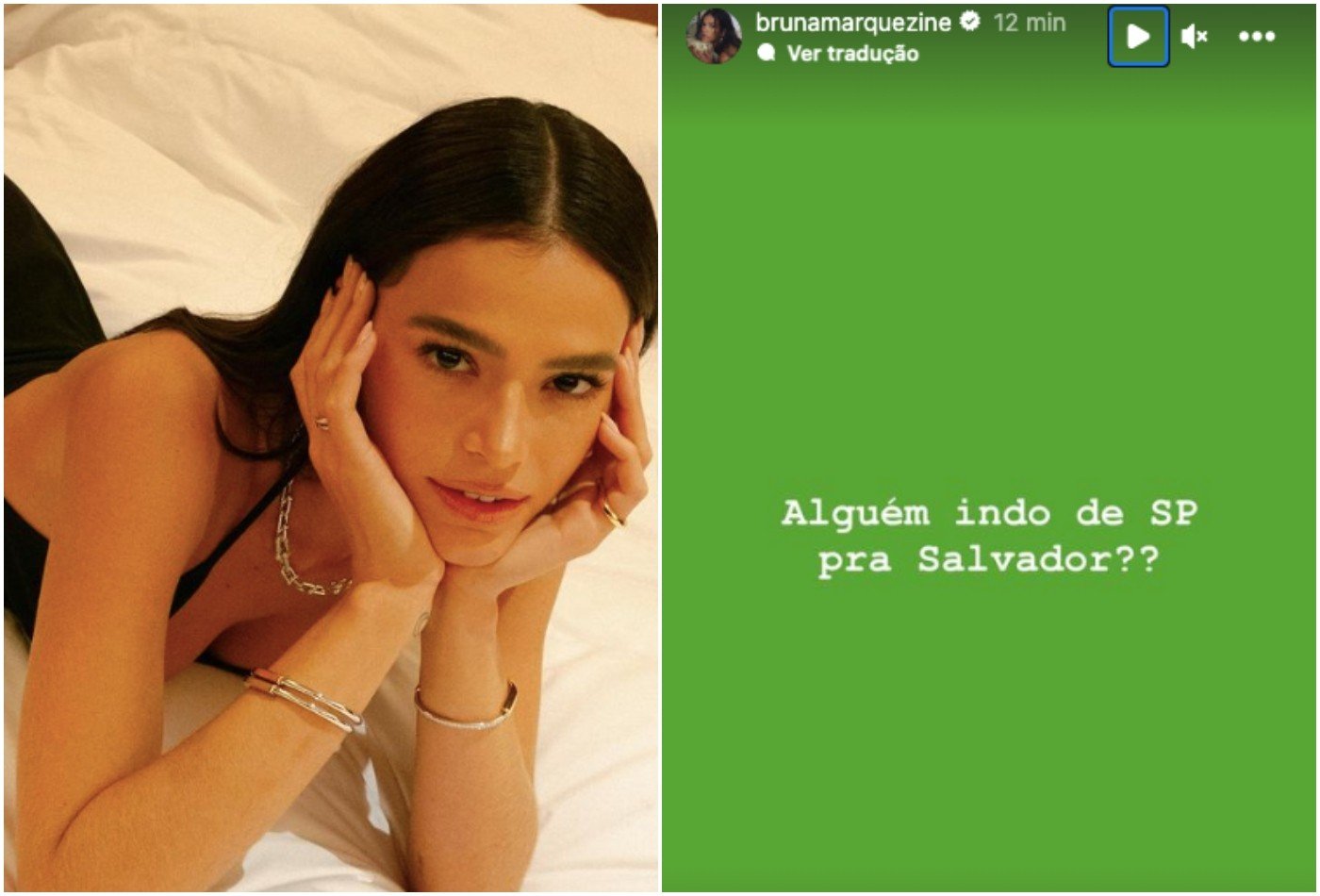Já em clima de Carnaval, a atriz fez uma publicação em busca de alguém que estivesse indo de São Paulo para Salvador Bruna Marquezine já está se preparando para cair na folia! Nesta sexta-feira (9), a atriz de 28 anos deu indícios que deseja ir para Salvador para curtir o Carnaval.